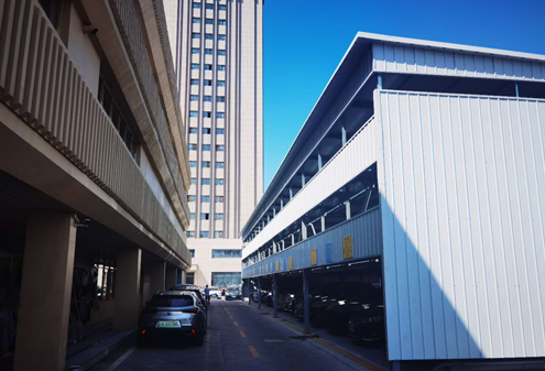 運行原理:汽車出入口設置在地面層,中層停車板既可做升降運動,又可進行橫移運動,上層停車板只可做升降運動,下層停車板只可做橫移運動,通過中層和下層的空位,利用停車板運動變換空位,將汽車下降至第一層,取出汽車。